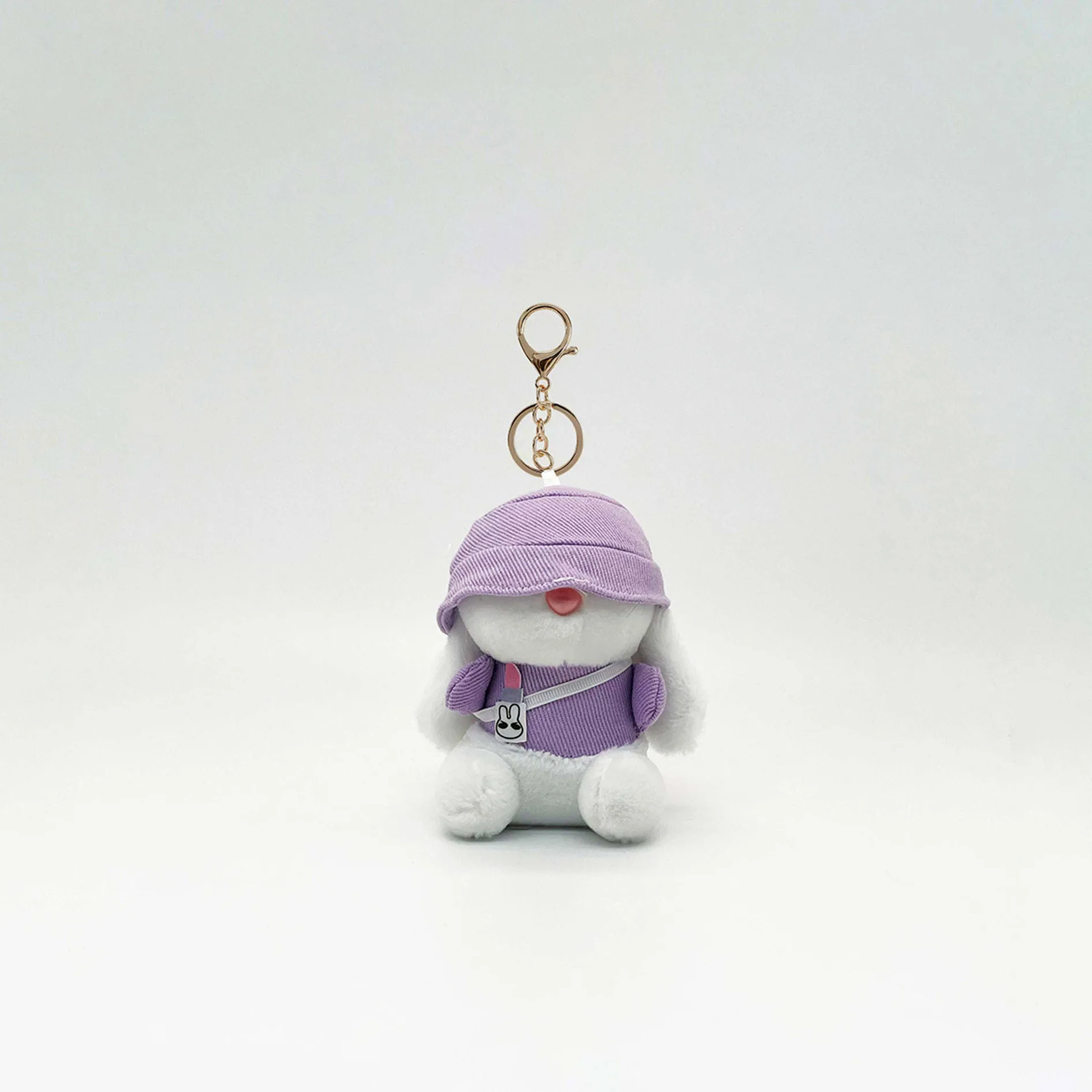 Shop the Rabbit Toy at Pinknino. Charming purple bunny plush keychain with a cozy hat. Perfect for keys, handbags, or gifting to bunny lovers.
