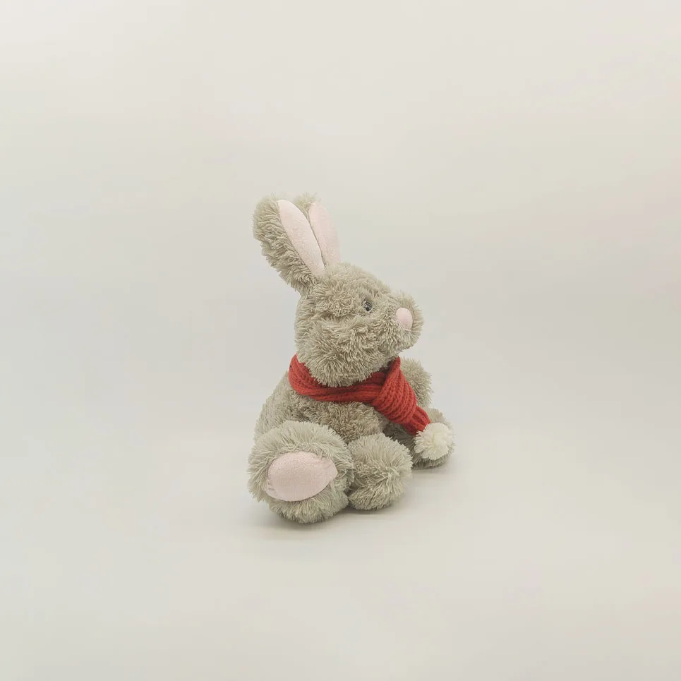 Red Scarf Sitting Large Bunny Plush Toy – Soft Huggable Doll | Pinknino